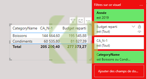 Cela permet que quel que soit les filtres appliqués sur la table des catégories par la personne qui regarde les données, elle voit bien uniquement la quote-part du budget qui correspond à son périmètre.